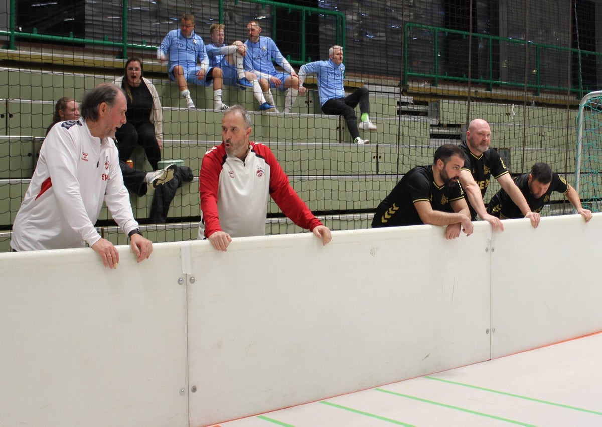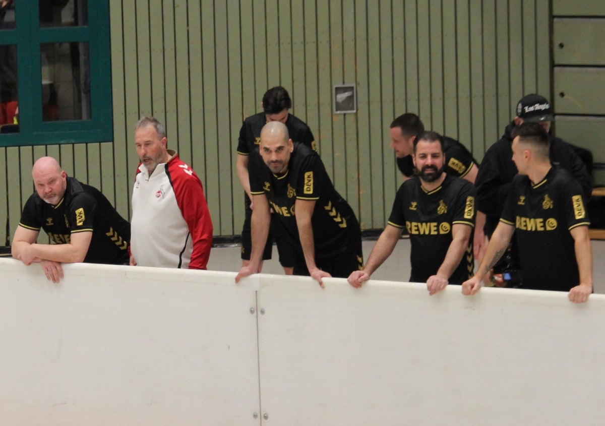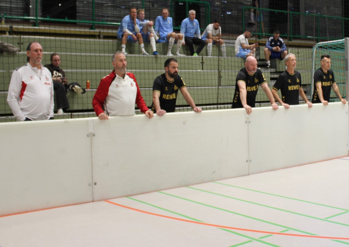 unser team hinter der bande bei den spielen