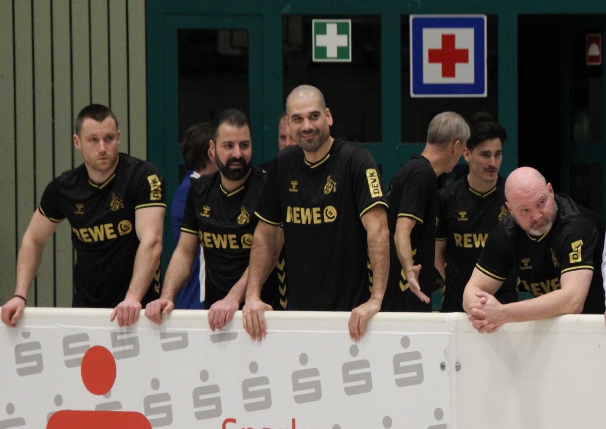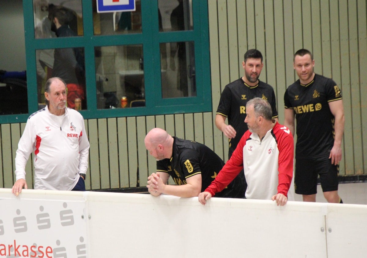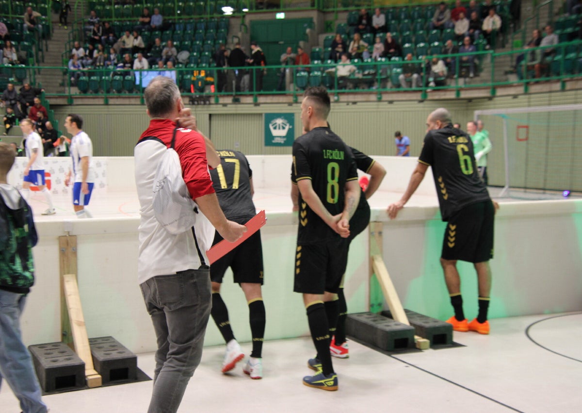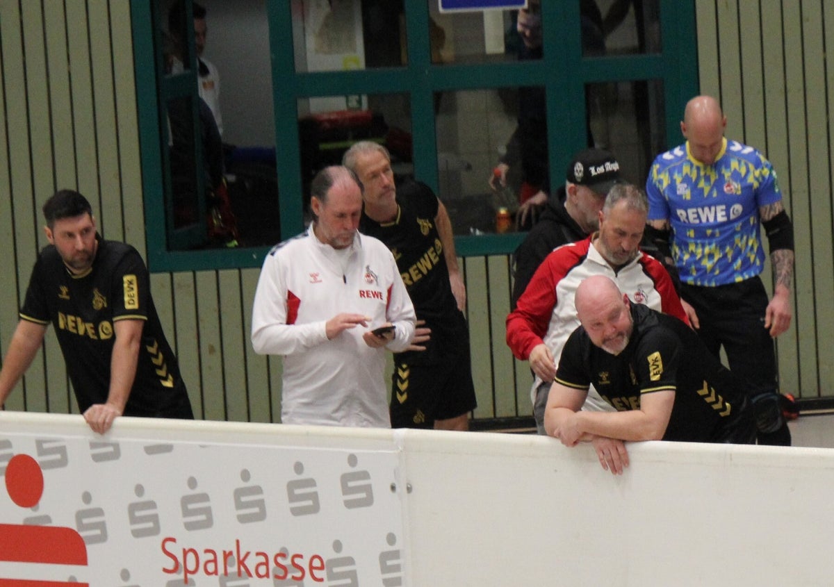 unser team hinter der bande bei den spielen